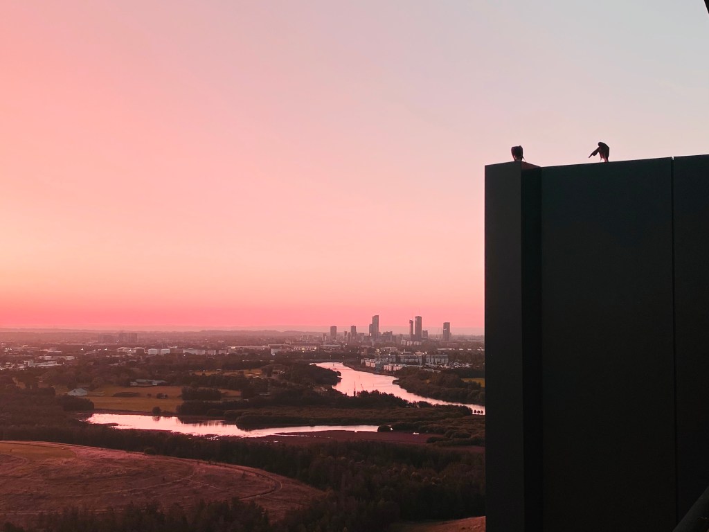 The sleepy sun Was hiding behind a cloud Her face wasn’t shown Yet her dress flowed That peculiar pink cloud Mirrors the river touching the lawn That mountain’s pinkish head Reflects my face where all the pink shone None of these evince her existence Yet she is there Because I know